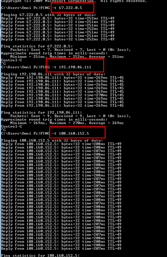 1) Please see attached screen shot and let me know your review as per ping test